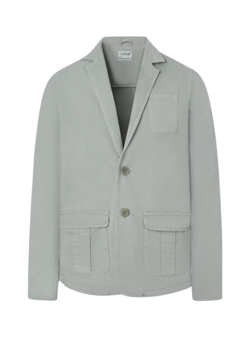 Americana Silbon. Modello Semiblazer. Colore verde. Chiusura con due bottoni. Tasche laterali con patta. Tasca applicata sul petto. Vestibilità regolare. Effetto lavato.