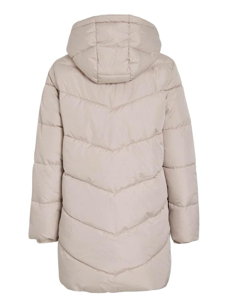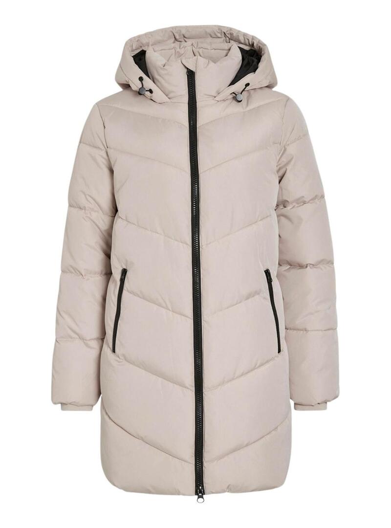 Giacca imbottita Vila. Modello Milja. Colore beige. Chiusura con zip bidirezionale. Colletto alto. Con cappuccio. Tasche laterali con zip. Polsini elasticizzati. Lunghezza media.