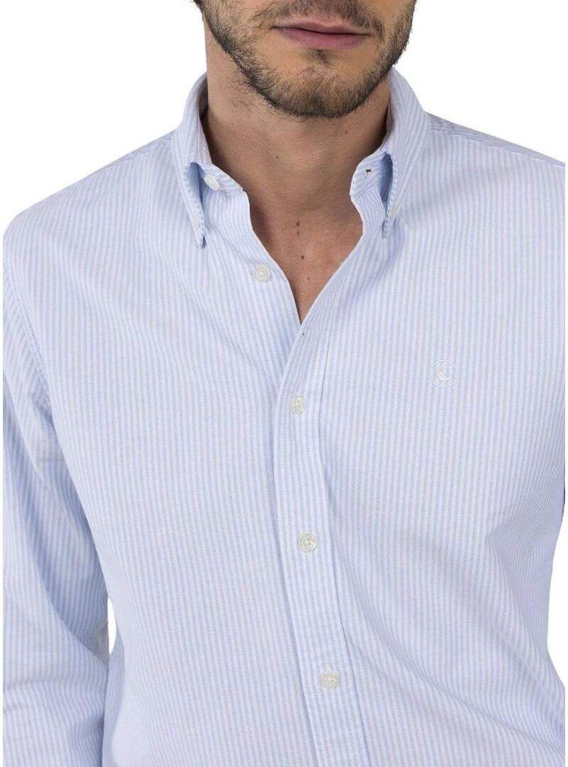 Camicia El Ganso. Modello Yale. Colore blu e bianco. Tessuto oxford a righe verticali. Colletto abbottonato. Logo ricamato in filo bianco sul petto. Vestibilità regolare.