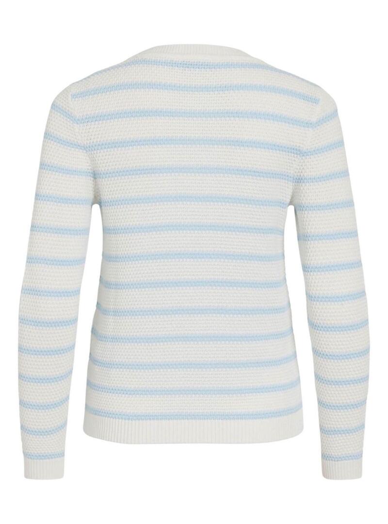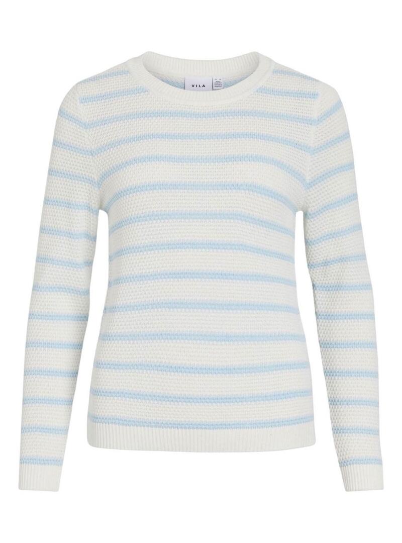 Maglia Vila. Modello Vidalo. Colore bianco e blu. Righe orizzontali. Colletto rotondo. Orli a costine. Vestibilità regolare. Manica lunga. Tessuto con trama.