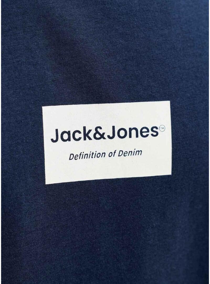 Maglietta Jack and Jones. Modello Frank. Colore navy. Collo rotondo. Manica corta. Taglio oversize. Stampa del marchio sulla parte anteriore.