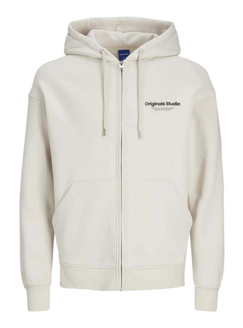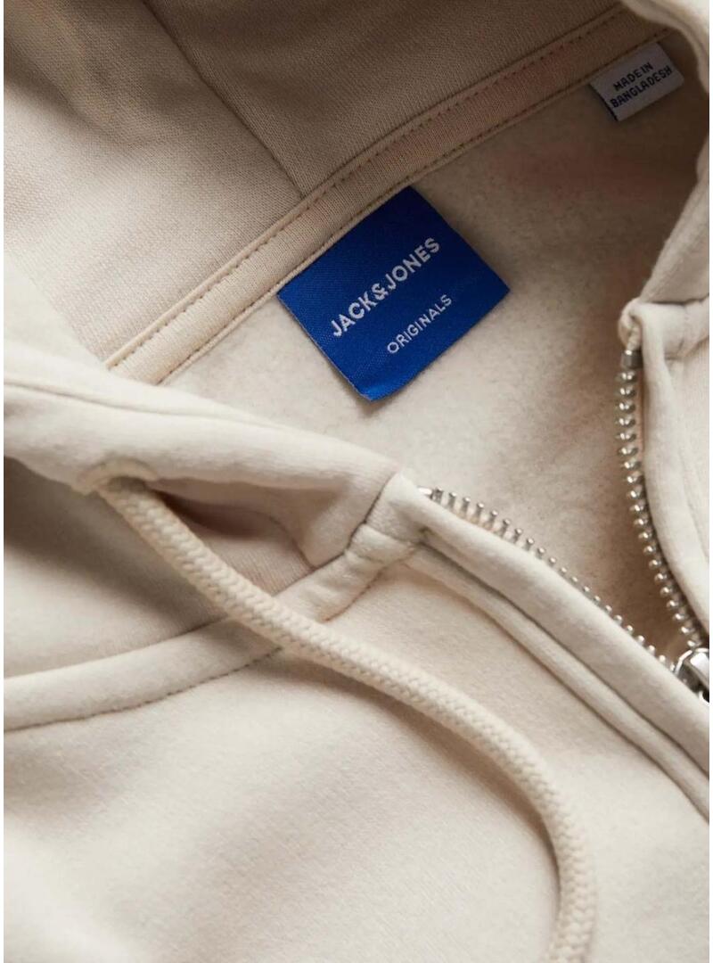 Felpa Jack and Jones. Modello con chiusura a cerniera. Cappuccio con coulisse regolabile. Colore beige. Tasche laterali. Polsini elasticizzati. Logo originals stampato sul petto. Vestibilità regolare.