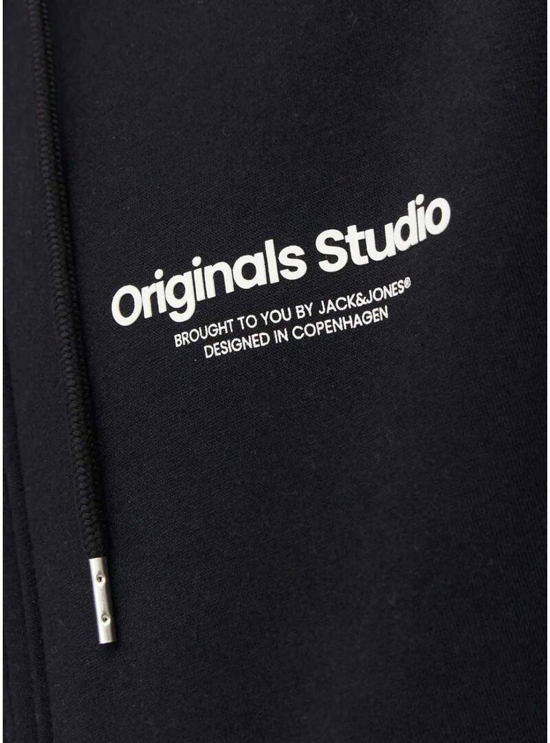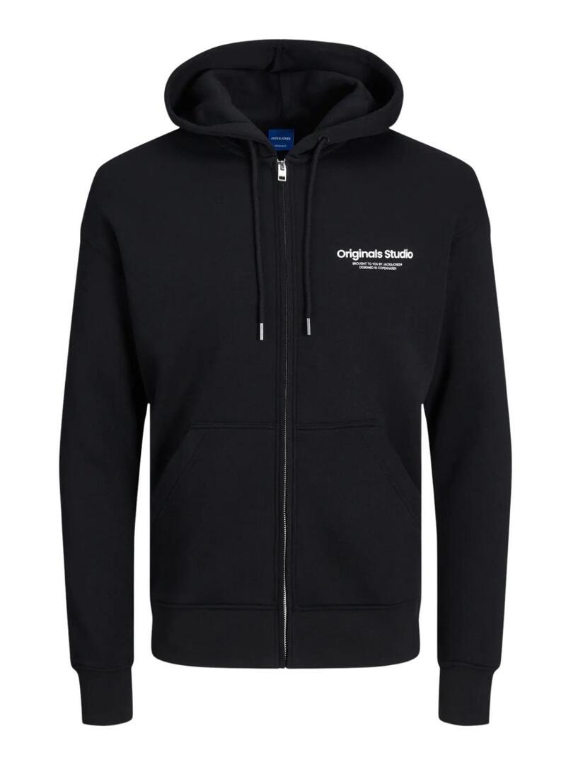 Felpa Jack and Jones. Modello con chiusura a zip. Cappuccio con cordino regolabile. Colore nero. Tasche laterali. Estremità elastiche. Logo Originals stampato sul petto. Vestibilità regolare.