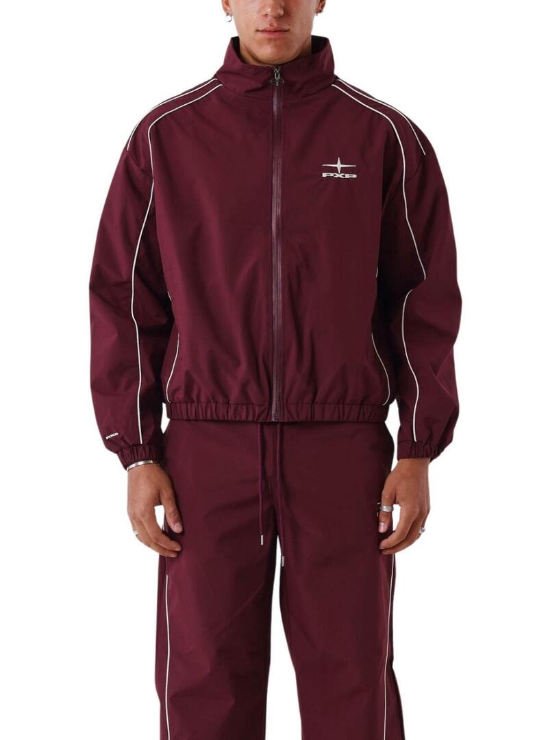 Giacca Project x Paris. Modello Veste. Colore bordeaux. Collo alto. Chiusura con zip. Manica lunga. Orli elastici. Cuciture a contrasto bianche. Logo ricamato sul petto. Tasche laterali.