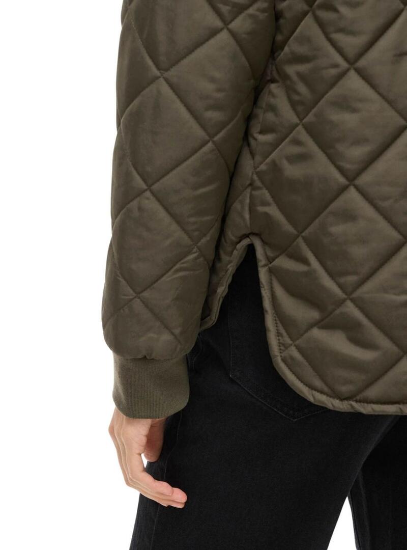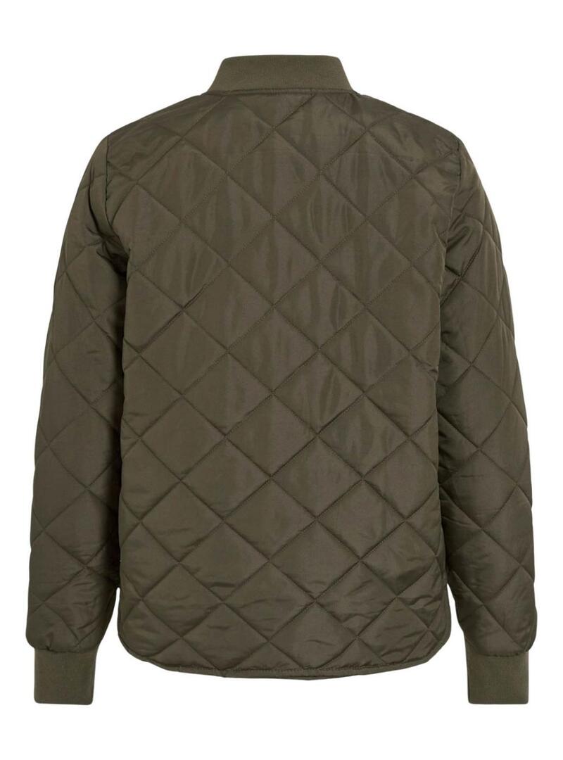 Giubbotto Vila. Modello Vitate. Colore verde. Stile bomber. Imbottitura a rombi. Chiusura con cerniera. Fondo arrotondato. Polsini elastici. Tasche laterali con bottone a pressione. Colletto a coste.