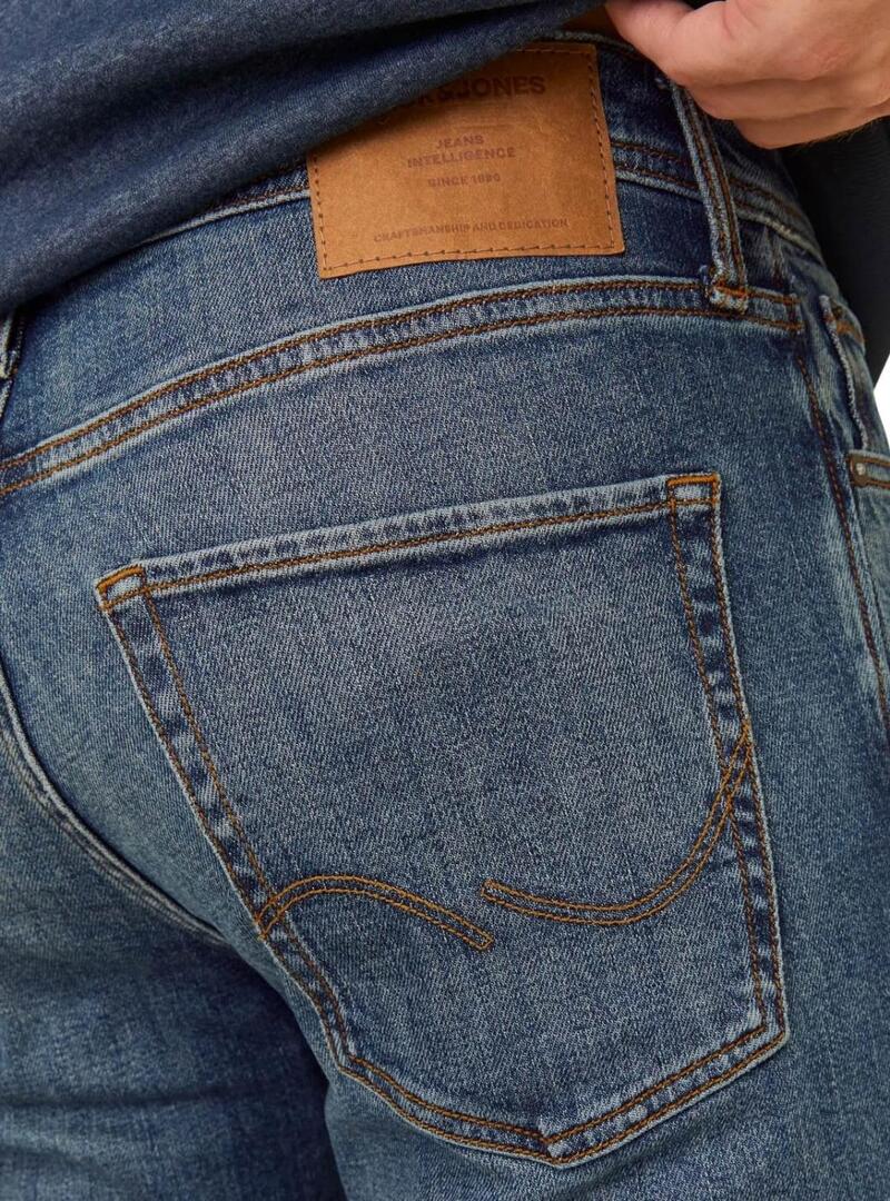 Pantaloni in denim Jack and Jones. Modello Clark. Colore blu grigio. Lavaggio medio. Chiusura con bottone e zip. Cinque tasche. Taglio slim. Vestibilità leggermente aderente. Chiusura con bottoni.