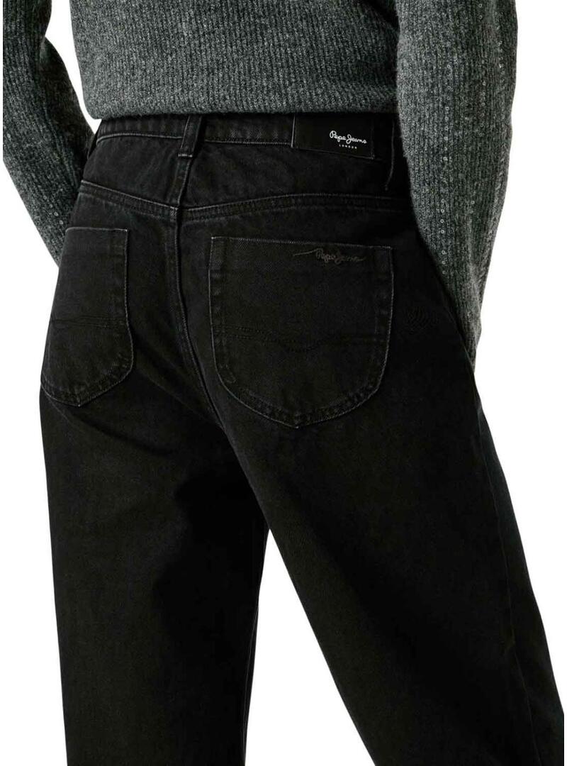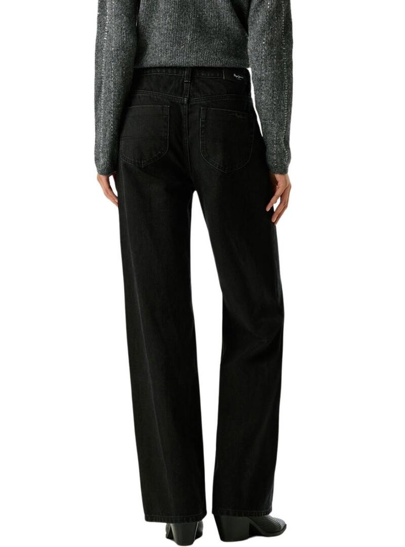 Pantaloni in denim Pepe Jeans. Modello Lexa. Colore nero. Vita alta. Chiusura con bottone e zip. Cinque tasche. Gamba dritta. Patch del marchio in vita.