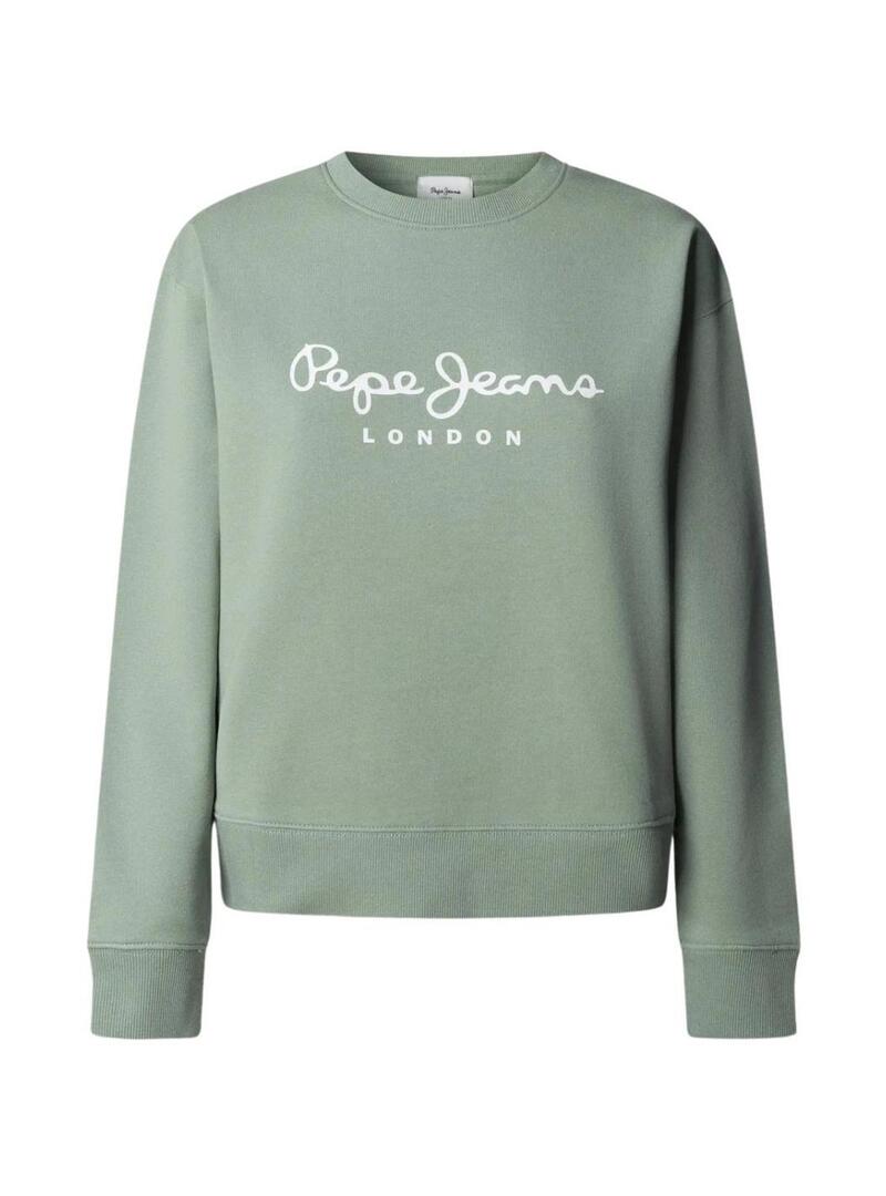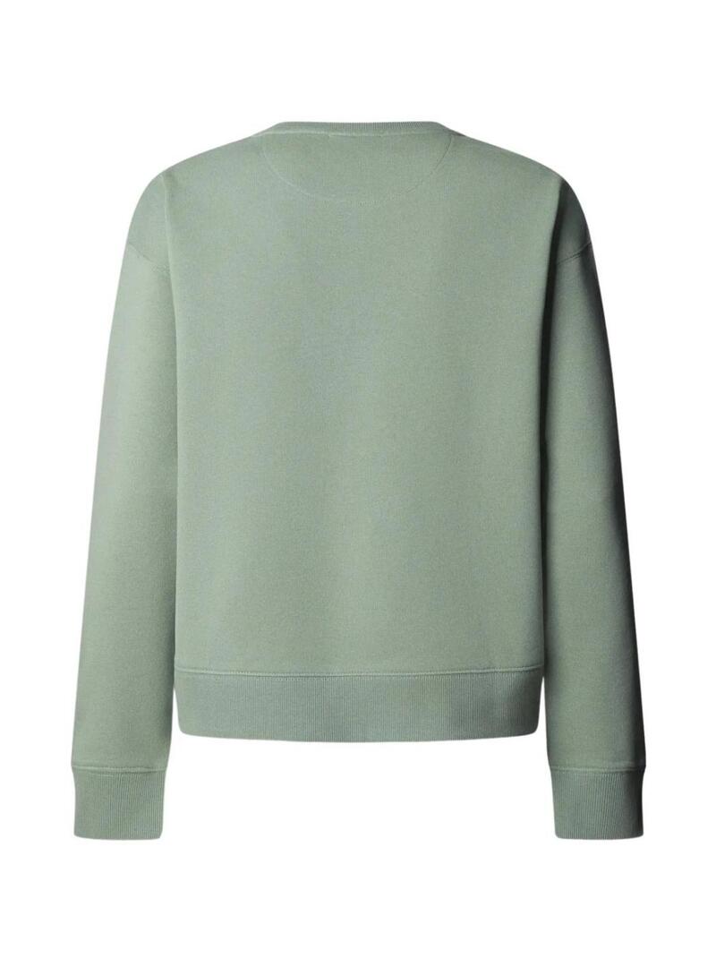 Felpa Pepe Jeans. Modello Maty. Colore verde. Collo rotondo. Orli a costine. Vestibilità dritta. Logo stampato sul petto in bianco. Spalle leggermente cadenti.