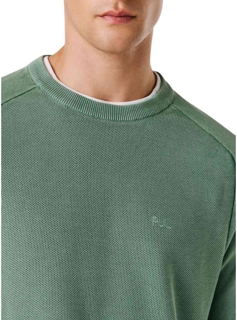 Maglia Pepe Jeans. Modello Fleet. Colore verde. Collo rotondo. Manica lunga. Orli a costine. Vestibilità regolare. Iniziali PJL ricamate sul petto. Etichetta laterale del marchio.