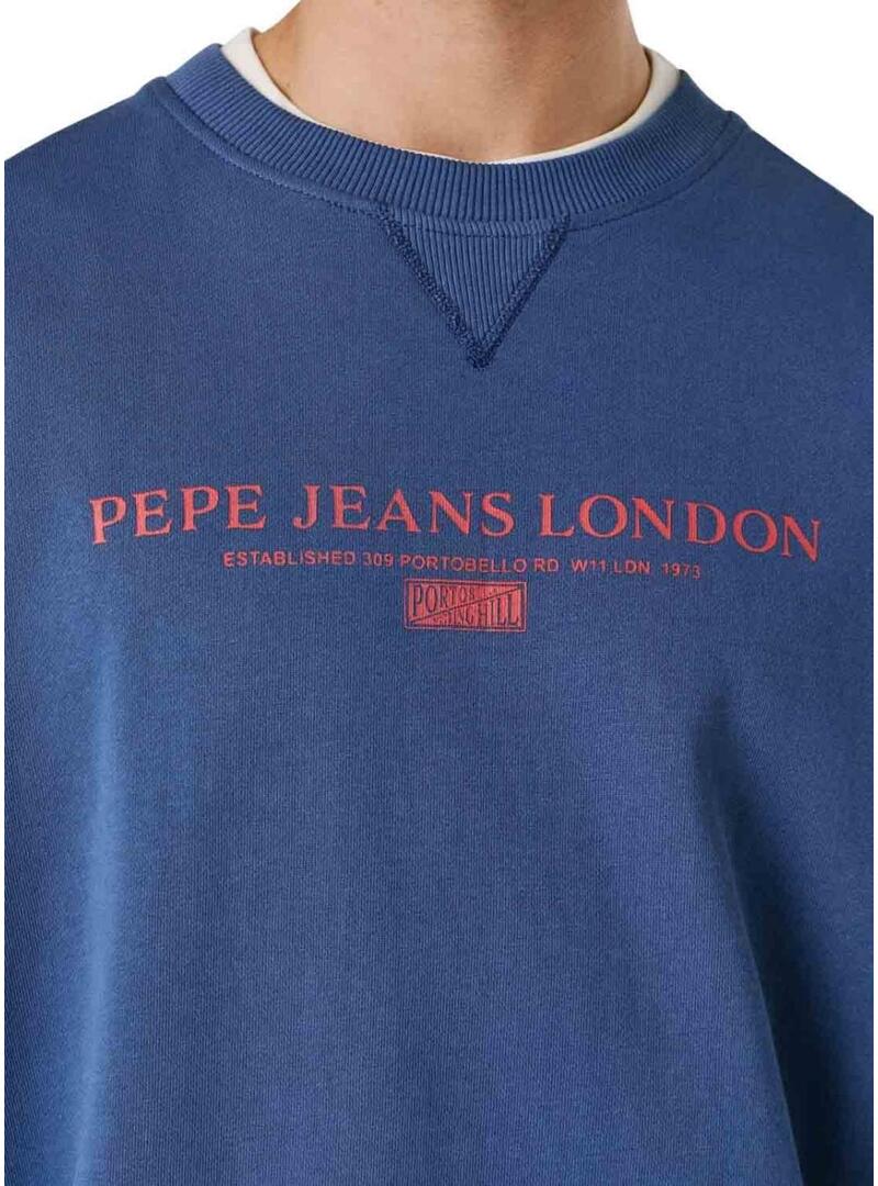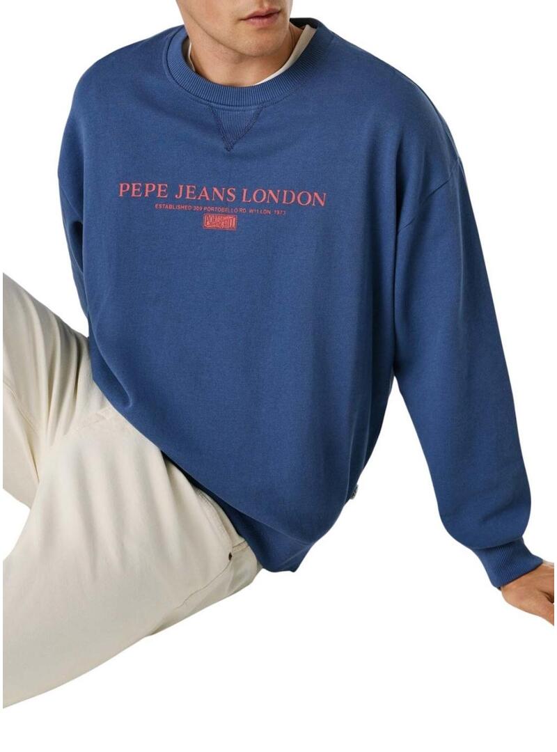 Felpa Pepe Jeans. Modello Summer Seasonal. Colore blu. Collo rotondo. Vestibilità oversize. Orli a coste. Logo stampato sul petto in rosso.