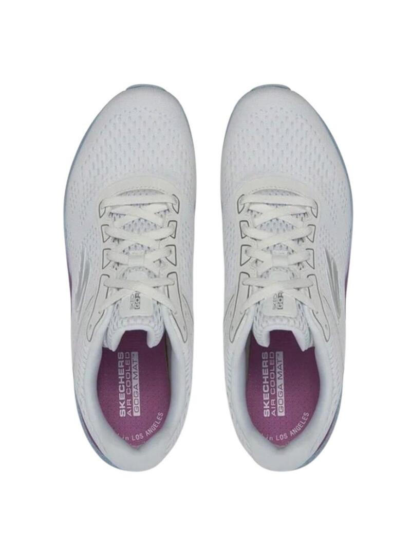 Sneakers Skechers Go Run bianche e blu per donna.