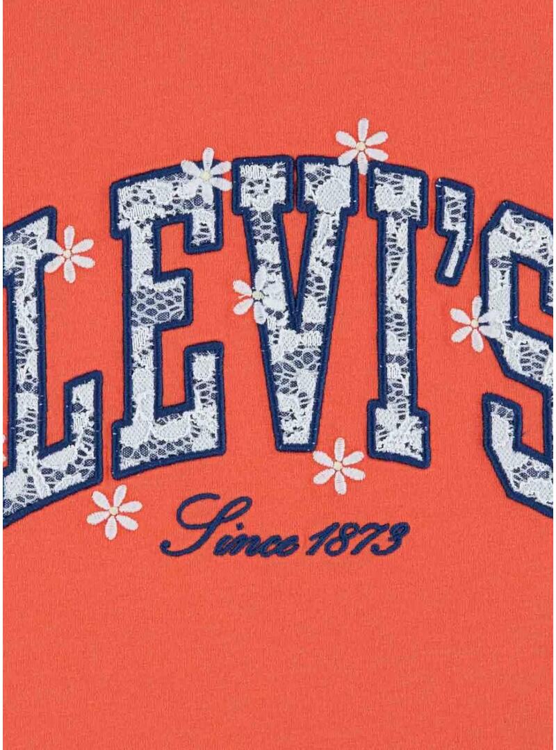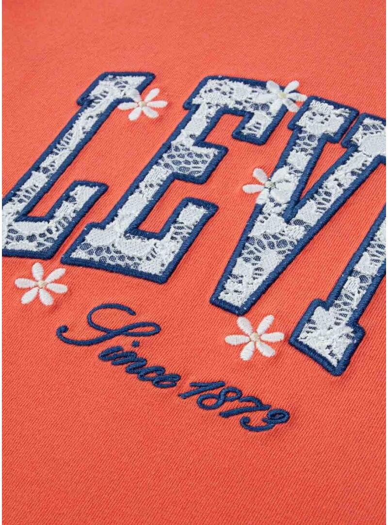 Maglietta Levis. Modello Chambray Applique. Colore arancione. Colletto rotondo a coste. Manica corta. Decorazione ricamata con applicazione all'uncinetto.