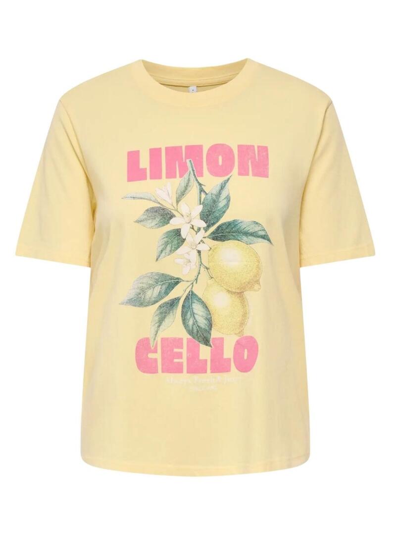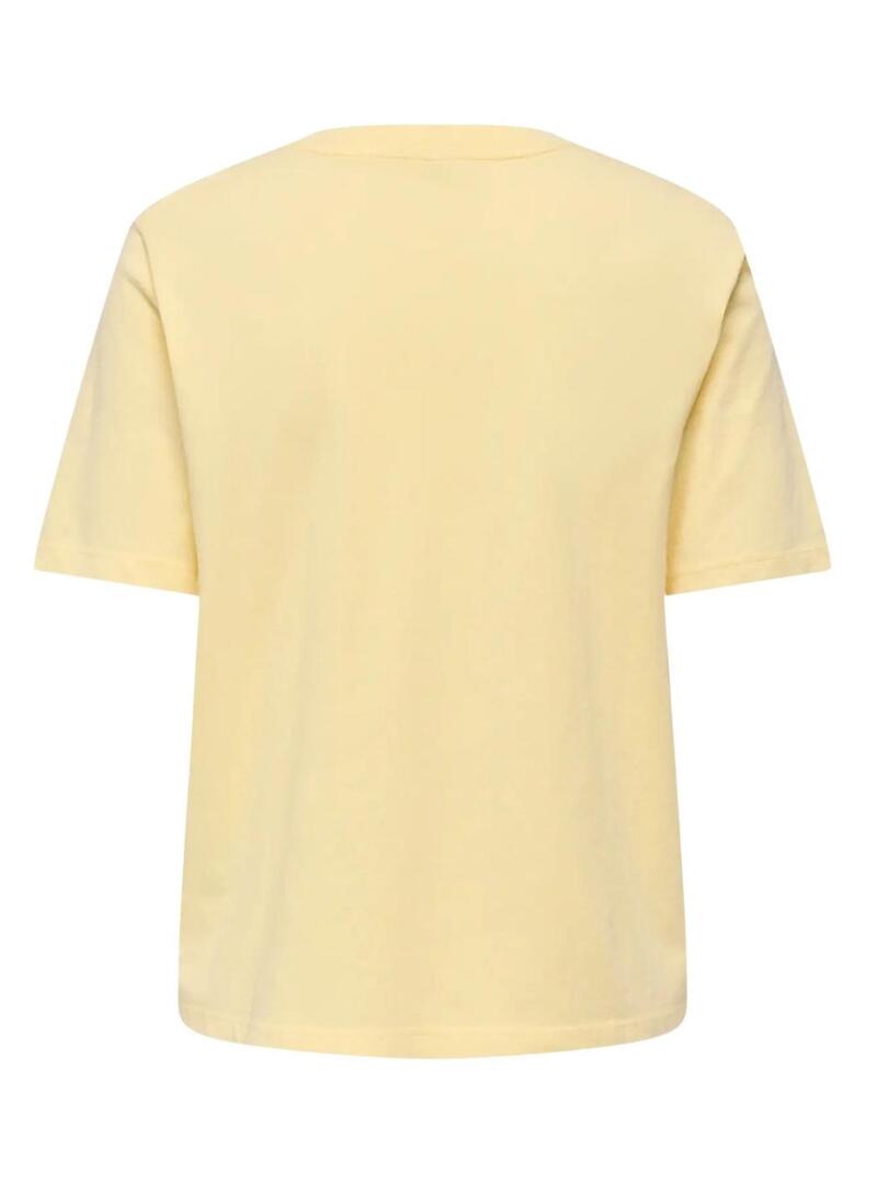 Maglietta Only. Modello Lucy. Colore giallo. Collo rotondo. Manica corta. Taglio regolare. Grafica sul petto.