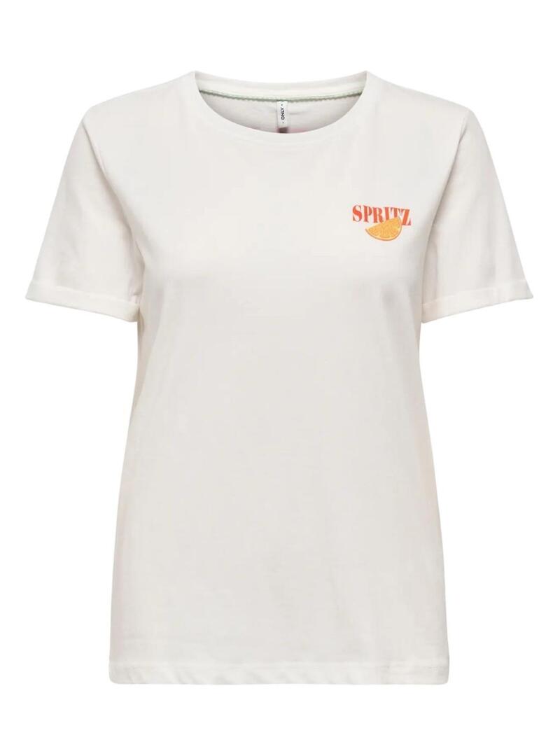 Maglietta Only. Modello Kita. Colore bianco. Collo rotondo. Manica corta. Taglio regolare. Stampa sul petto e sulla schiena.