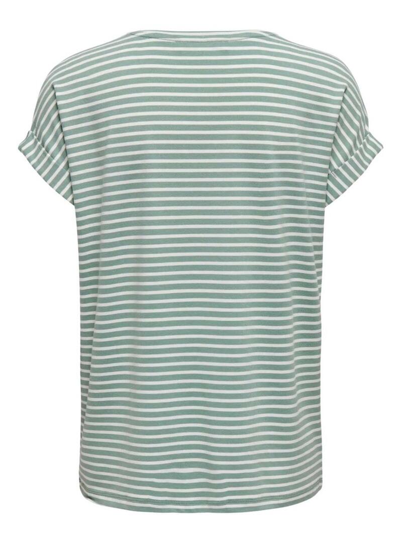 Maglietta Only. Modello Moster. Colore verde. Motivo a righe. Girocollo. Manica corta. Spalle leggermente cadenti. Taglio regolare.