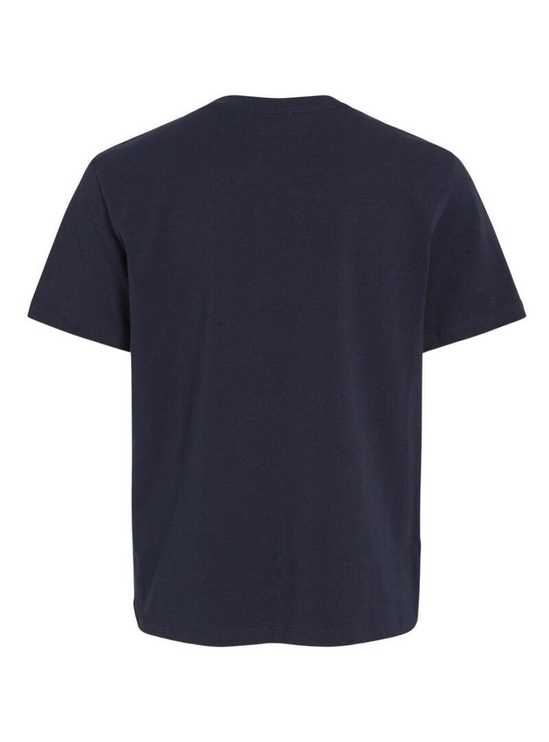 Maglietta Vila. Modello Vinora. Colore blu scuro. Collo rotondo. Manica corta. Vestibilità regolare. Colore bianco. Stile basico.