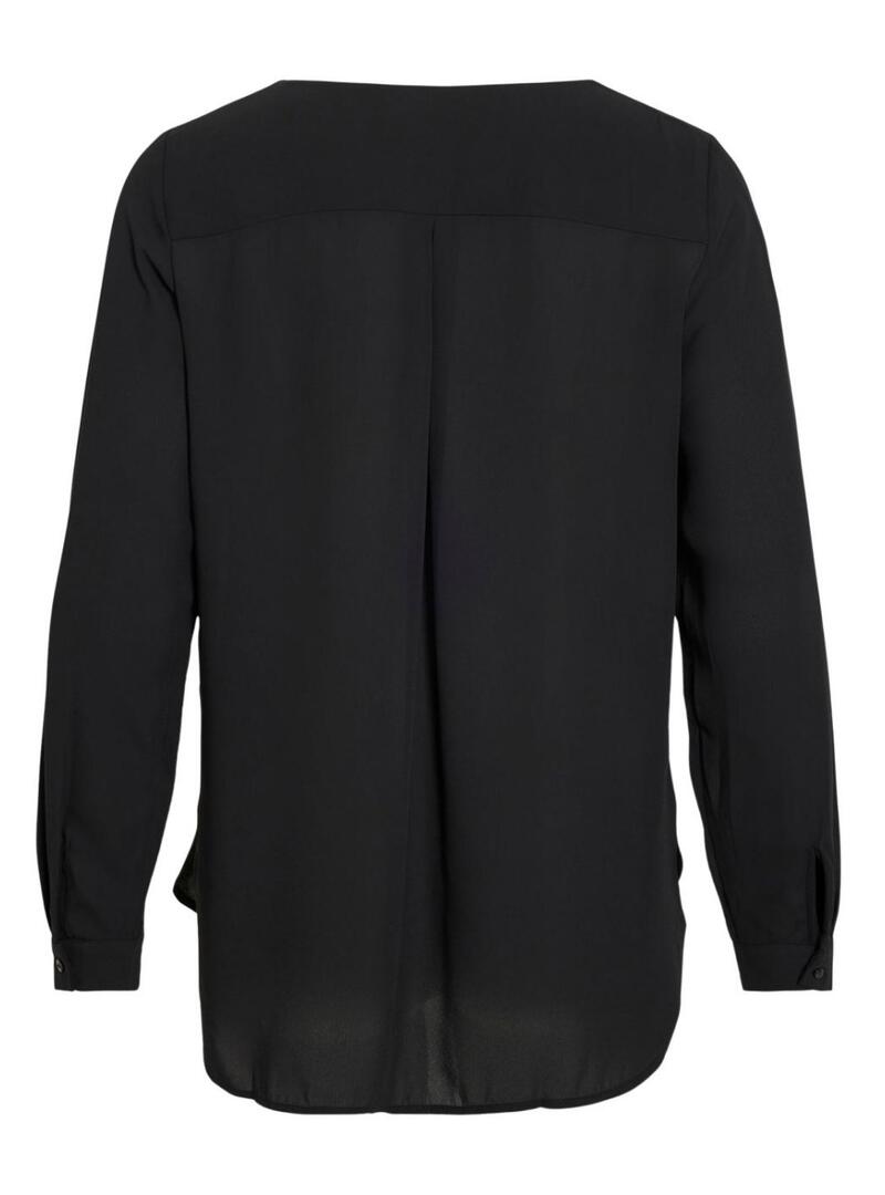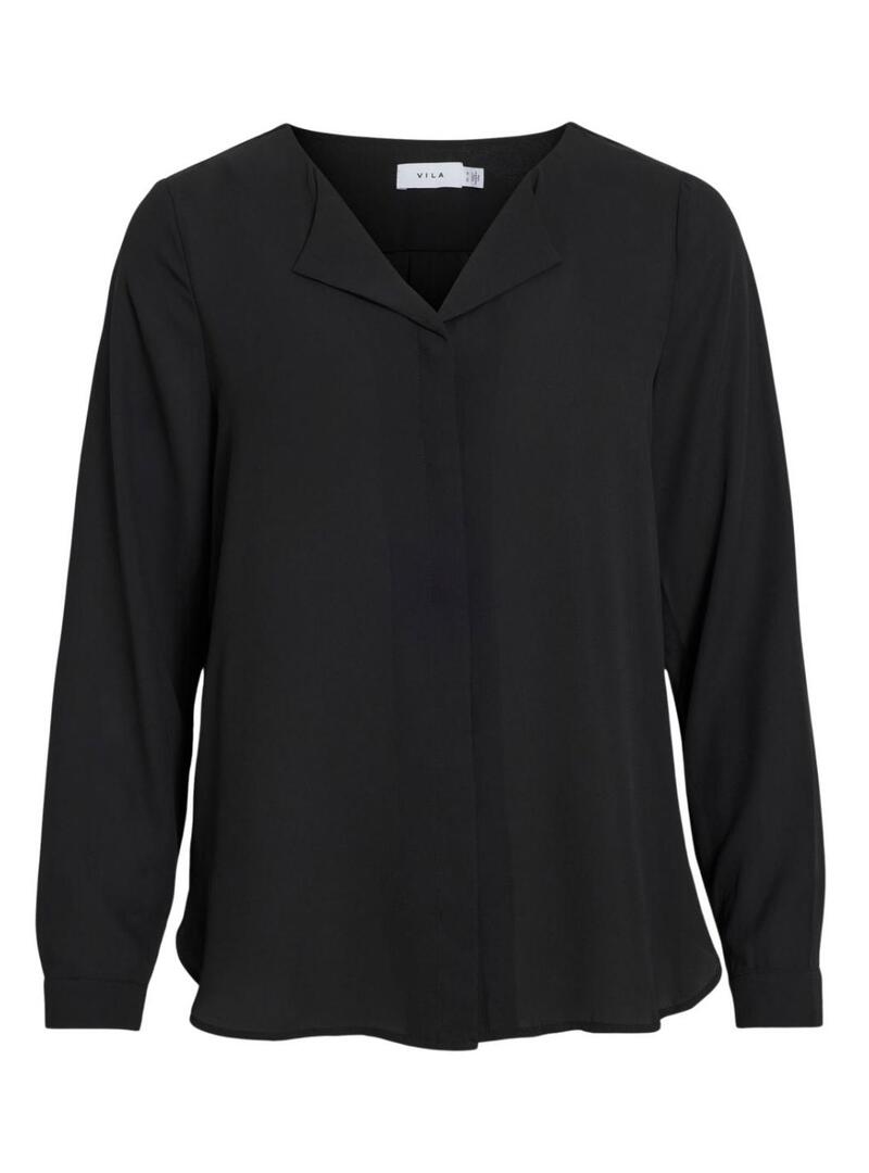 Camicia Vila. Modello Lucy. Colore nero. Colletto a V con revers. Chiusura con bottoni nascosti. Polsini con bottoni. Tessuto leggero.