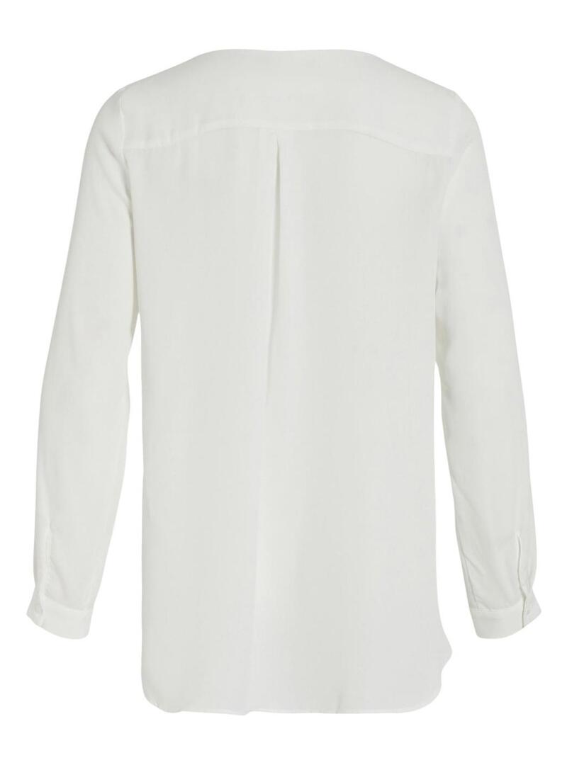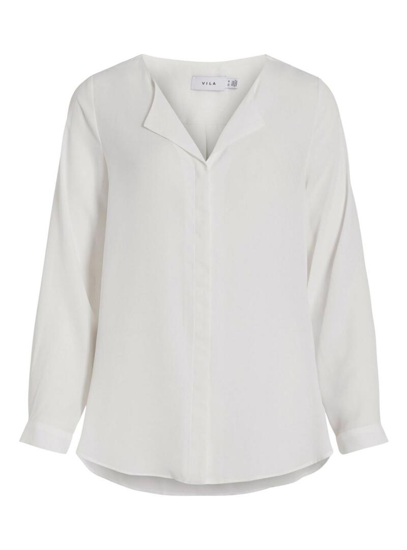 Camicia Vila. Modello Lucy. Colore bianco. Colletto a V con revers. Chiusura con bottoni nascosti. Polsini con bottoni. Tessuto leggero.