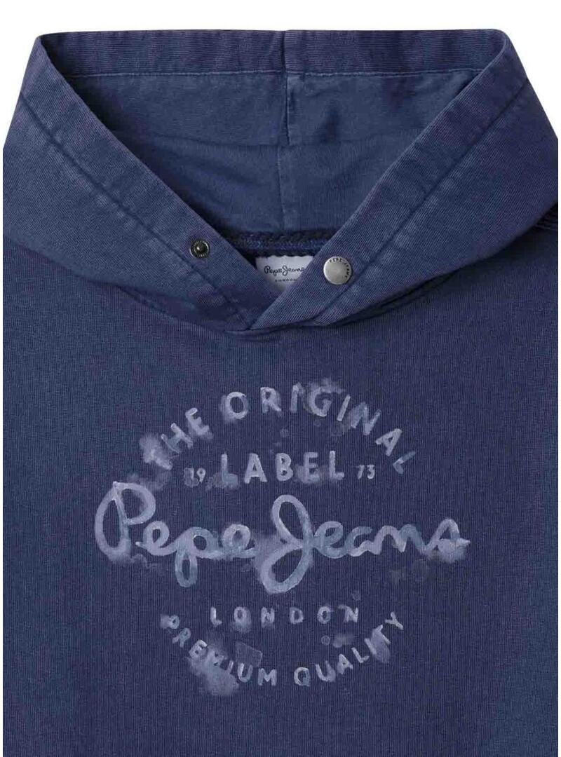 Felpa Pepe Jeans. Modello Vernon. Colore Blu. Tessuto in felpa. Con cappuccio. Manica lunga. Logo Pepe Jeans circolare stampato sulla parte anteriore. Cappuccio regolabile. Effetto consumato. Tasca marsupiale.
