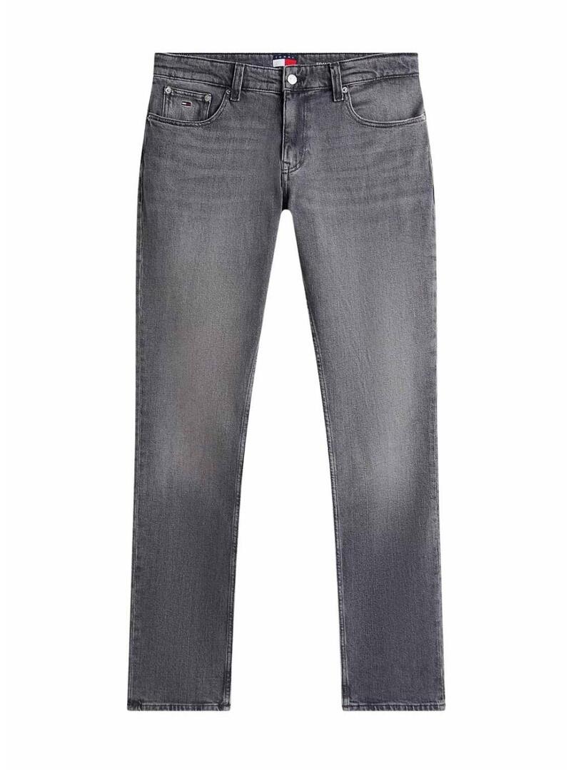 Pantaloni in denim Tommy Jeans. Colore grigio. Modello Scanton. Tessuto denim elasticizzato. Effetto consumato sul davanti e sul retro. Gamba slim. Chiusura con zip e bottone. Cinque tasche. Dettagli distintivi del marchio.