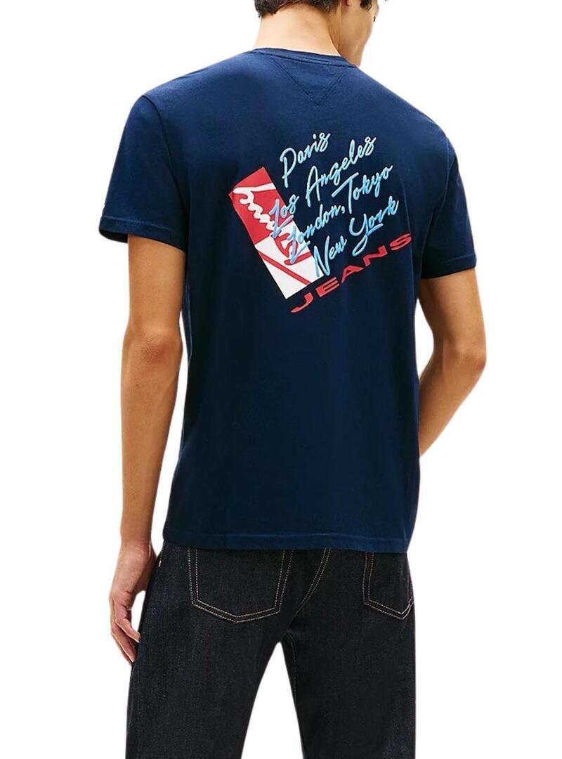 Maglietta Tommy Jeans. Colore navy. Collo rotondo. Taglio regolare. Manica corta. Logo con la firma di Tommy Jeans sul petto. Logo oversize sul retro. Logo ricamato sulla manica.