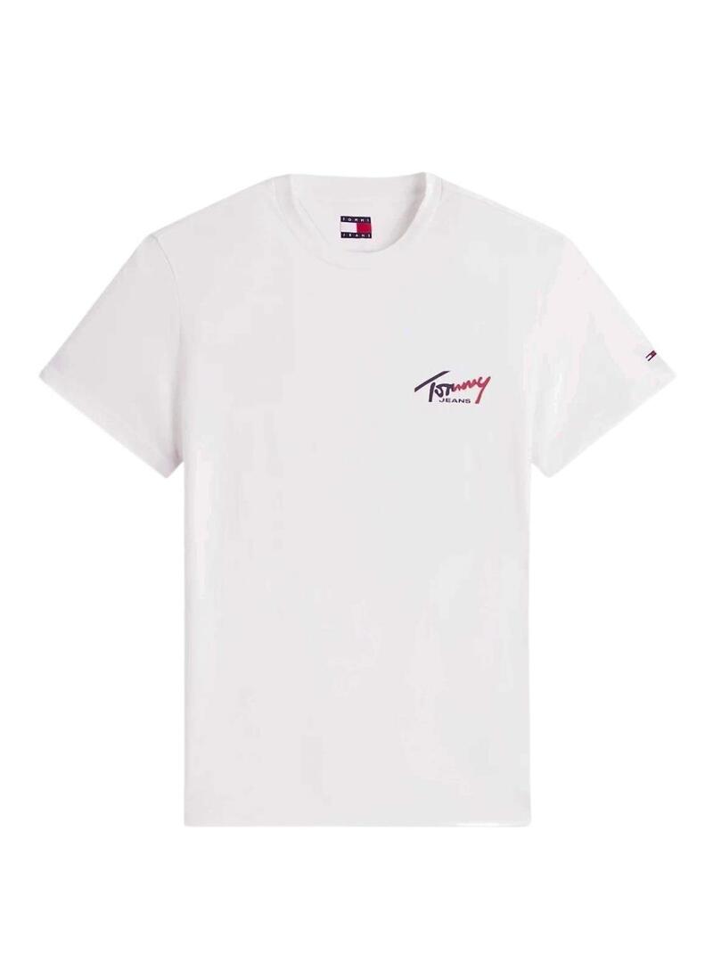 Maglietta Tommy Jeans Sign Chest Slim bianca per uomo.