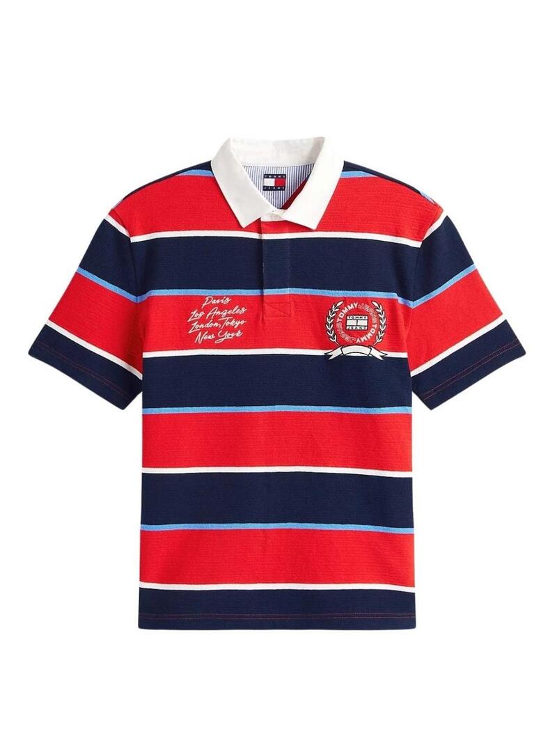 Maglia a righe Tommy Jeans Stripes Rugby rosso per uomo