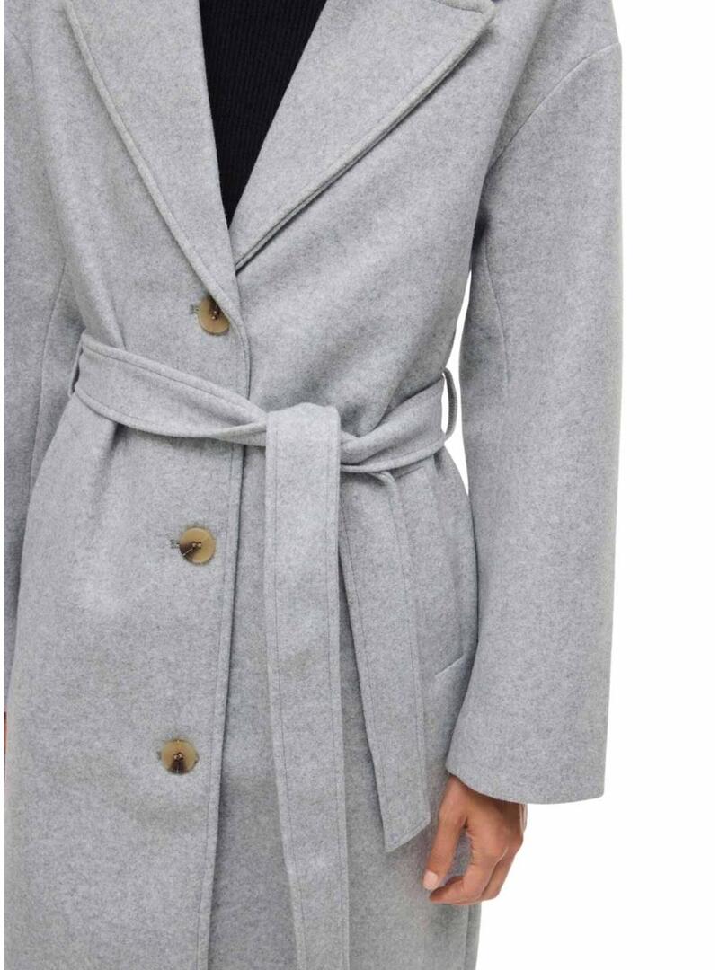 Cappotto Vila. Modello Claudia. Colore grigio. Taglio classico. Colletto a revers. Chiusura con bottoni. Cintura rimovibile. Tasche laterali. Fodera interna. Taglio regolare. Realizzato con materiali riciclati.
