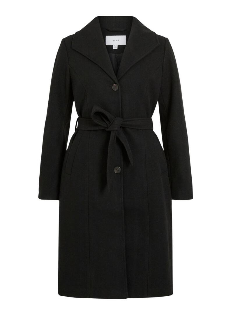 Cappotto Vila. Modello Claudine. Colore nero. Taglio classico. Colletto a revers. Chiusura con bottoni. Cintura con passanti. Fodera interna. Taglio regolare. Tasche laterali. Spacco posteriore.