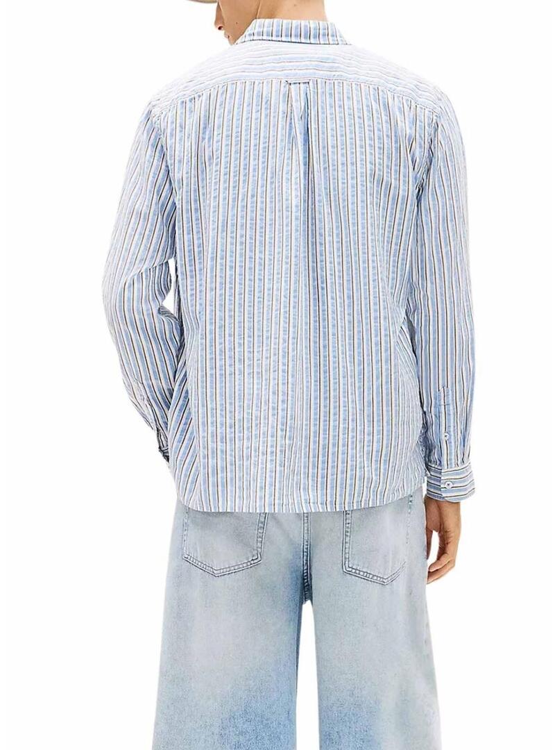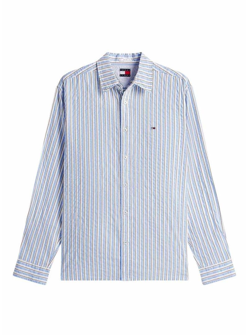 Camicia Tommy Jeans Seersucker a righe blu per uomo