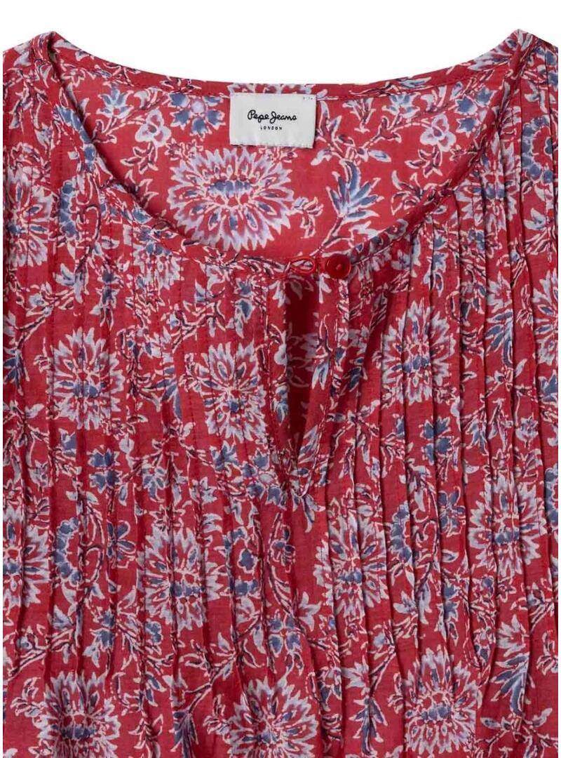 Camicetta Pepe Jeans. Modello Heidi. Stampato floreale all over. Polsini elastici. Dettagli plissettati sul canottiera. Manica lunga a sbuffo. Tessuto fluido.