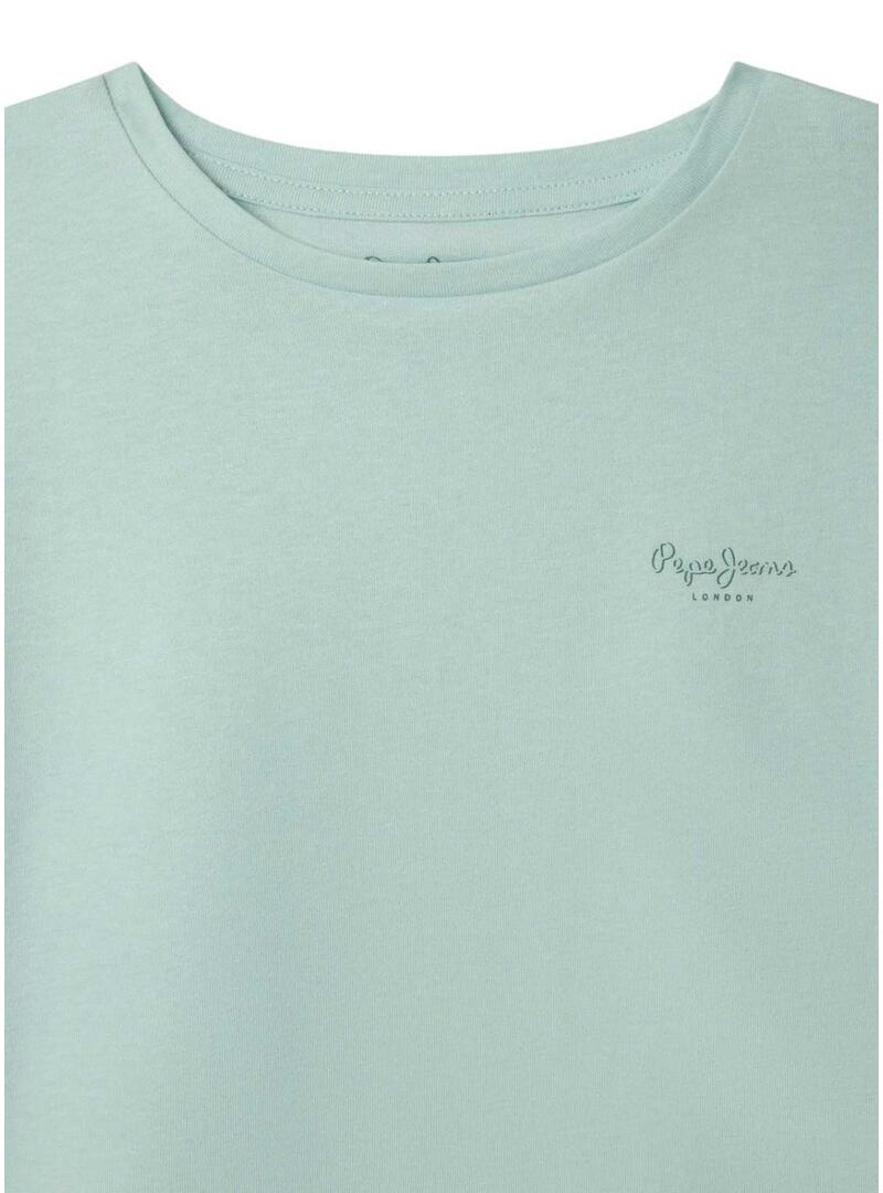 Maglietta Pepe Jeans. Modello Gigi. Colore blu. Tessuto leggero e flessibile. Manica corta. Collo rotondo. Finitura a doppio punto su maniche e fondo. Stampa del logo di Pepe Jeans sul lato destro.