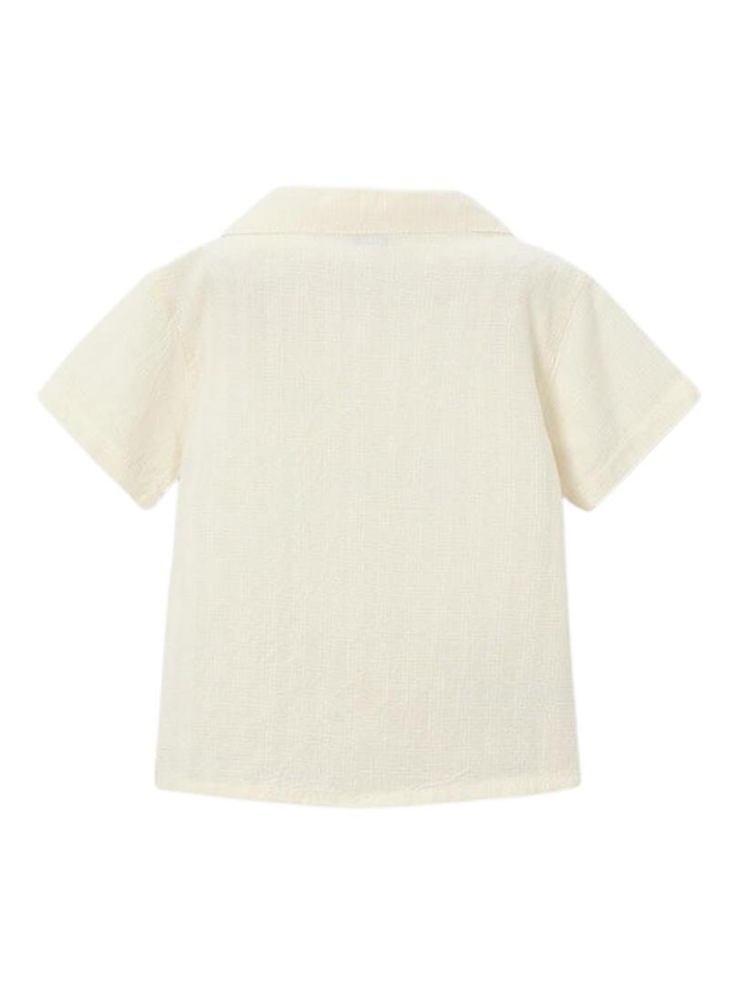 Camicia Mayoral. Colore beige. Dettagli ricamati. Manica corta. Chiusura con bottoni. Ricamato con motivo di moto e palma. Realizzato con Better Cotton.