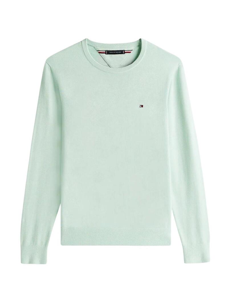 Maglia Tommy Hilfiger. Colore turchese. Collo tondo. Manica lunga. Taglio regolare. Logo ricamato sul petto. Nastro distintivo all'interno del collo. Finiture elastiche.
