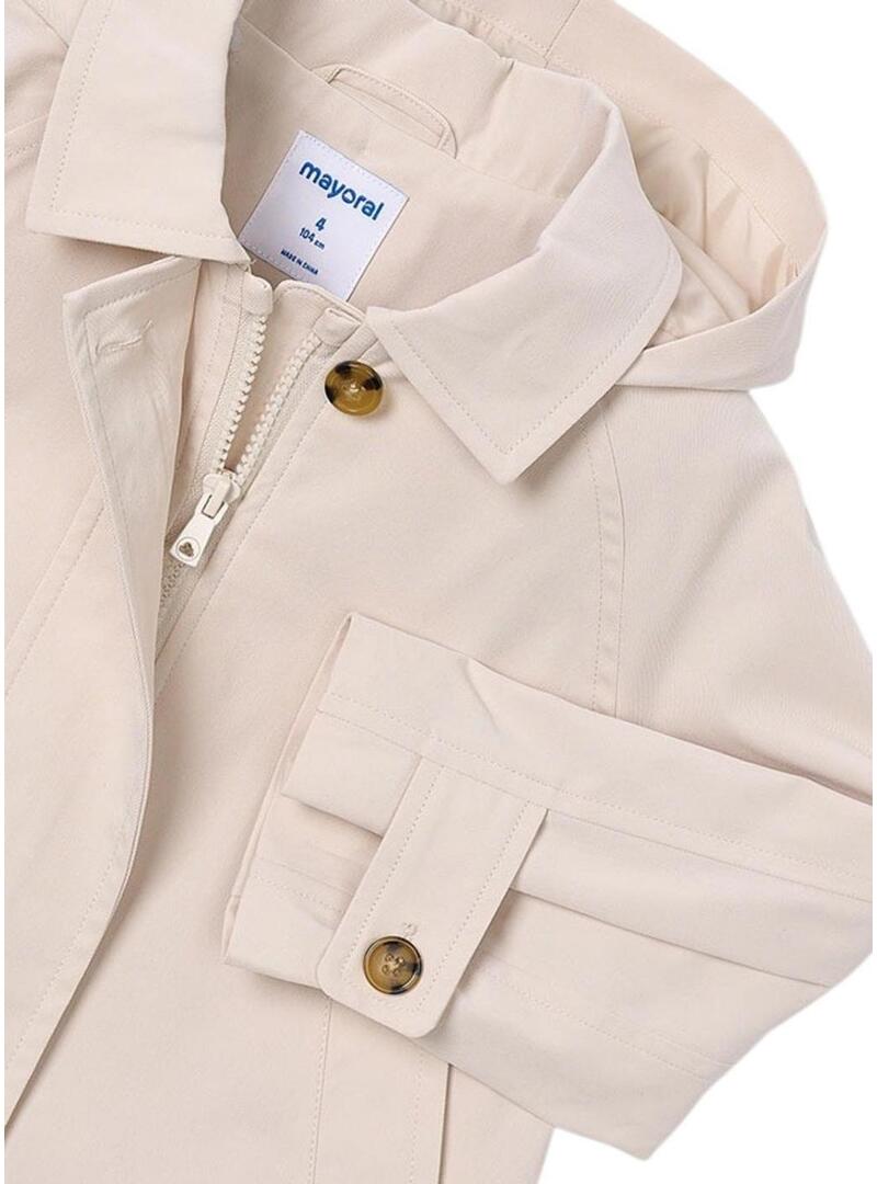 Giacca antivento Mayoral. Colore beige. Chiusura con cerniera e bottoni. Con cappuccio. Regolabile in vita e maniche. Realizzato in poliestere.