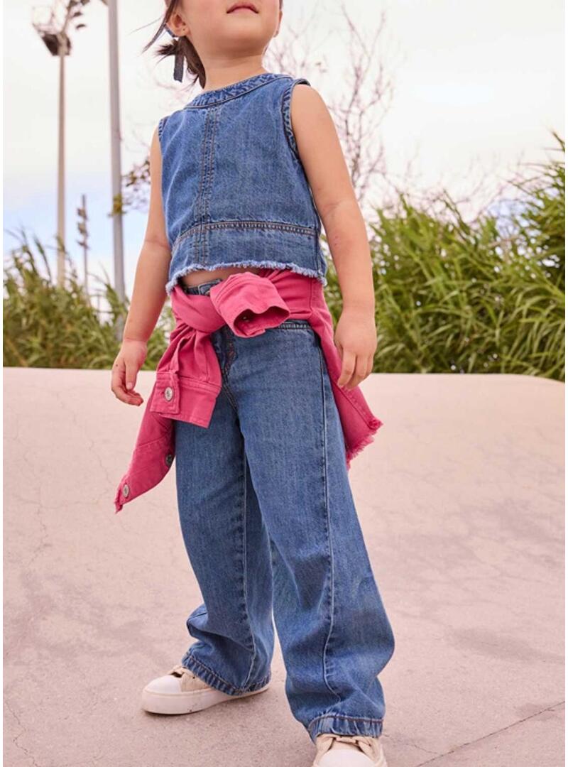 Pantaloni in denim Mayoral. Colore blu. Taglio largo. Vita con bottone. Tasche laterali. Etichetta cucita in vita con il logo del marchio.