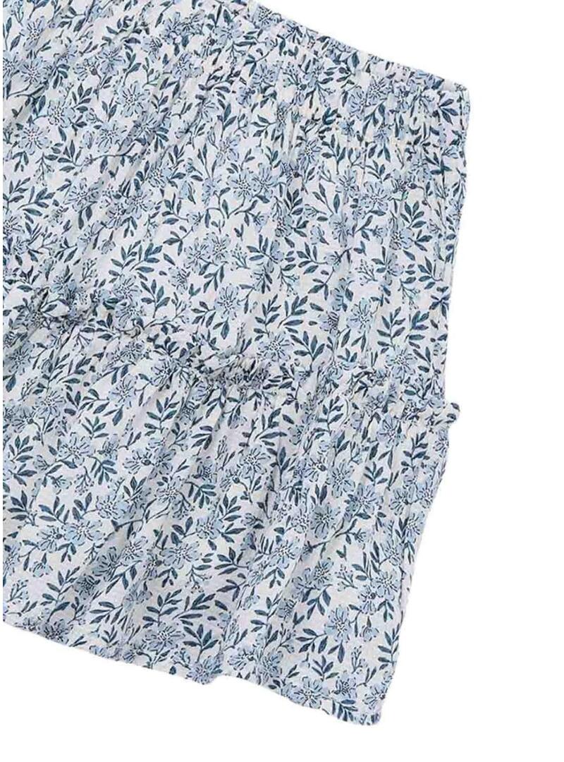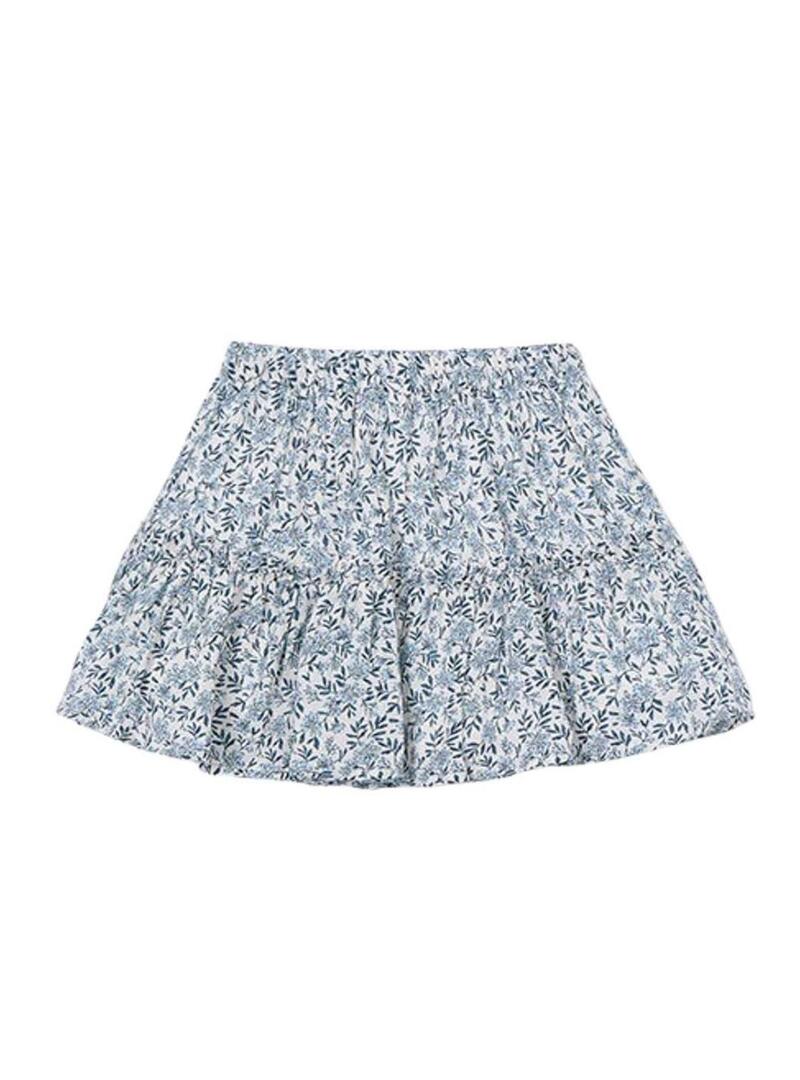 Gonna stampata Mayoral per bambina. Colore blu. Vita elasticizzata. Con volant su tutto il capo. Stampato con fiori blu.