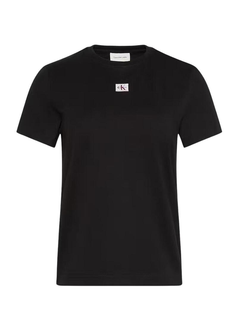 Maglietta Calvin Klein Jeans. Modello Label. Colore nero. Colletto rotondo. Etichetta del marchio ricamata al centro del petto. Manica corta. Taglio regolare. Stile basic.