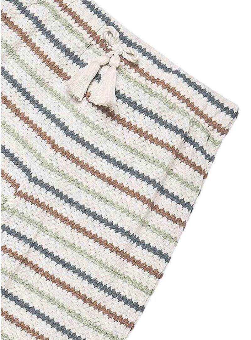 Pantaloni Mayoral. Punto a maglia. Colore grezzo. Stampato a righe multicolore. Vita elastica. Fiocco con nappine. Gamba larga. Taglio dritto. Stile fluido.