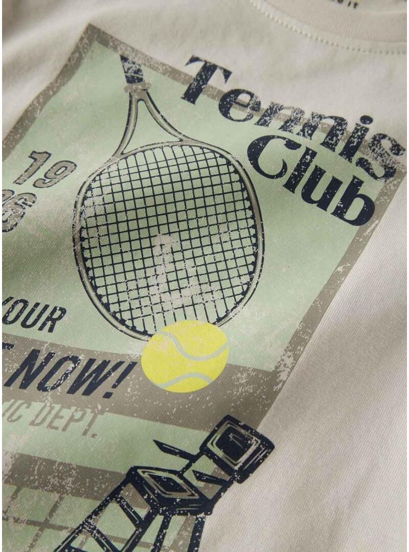 Maglietta Name It. Colore beige. Collo rotondo. Manica lunga. Stampe frontali Tennis Club. Design con racchetta e palla. Taglio dritto. Stile casual.