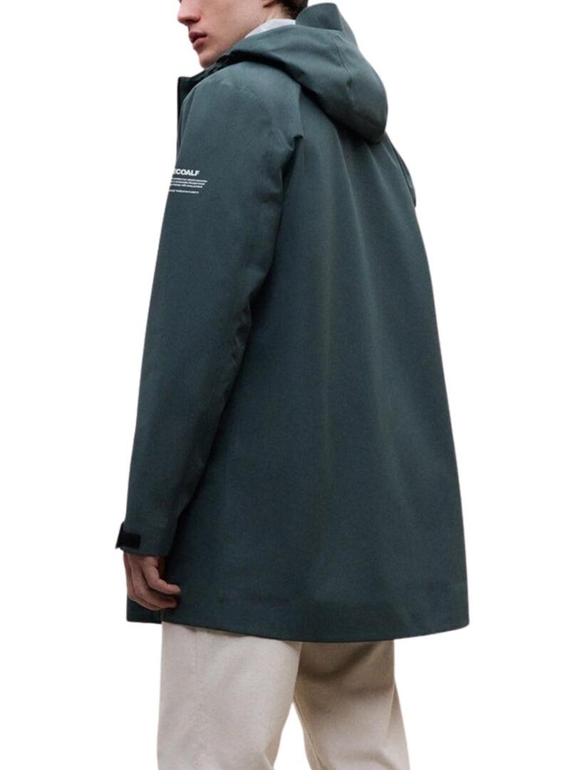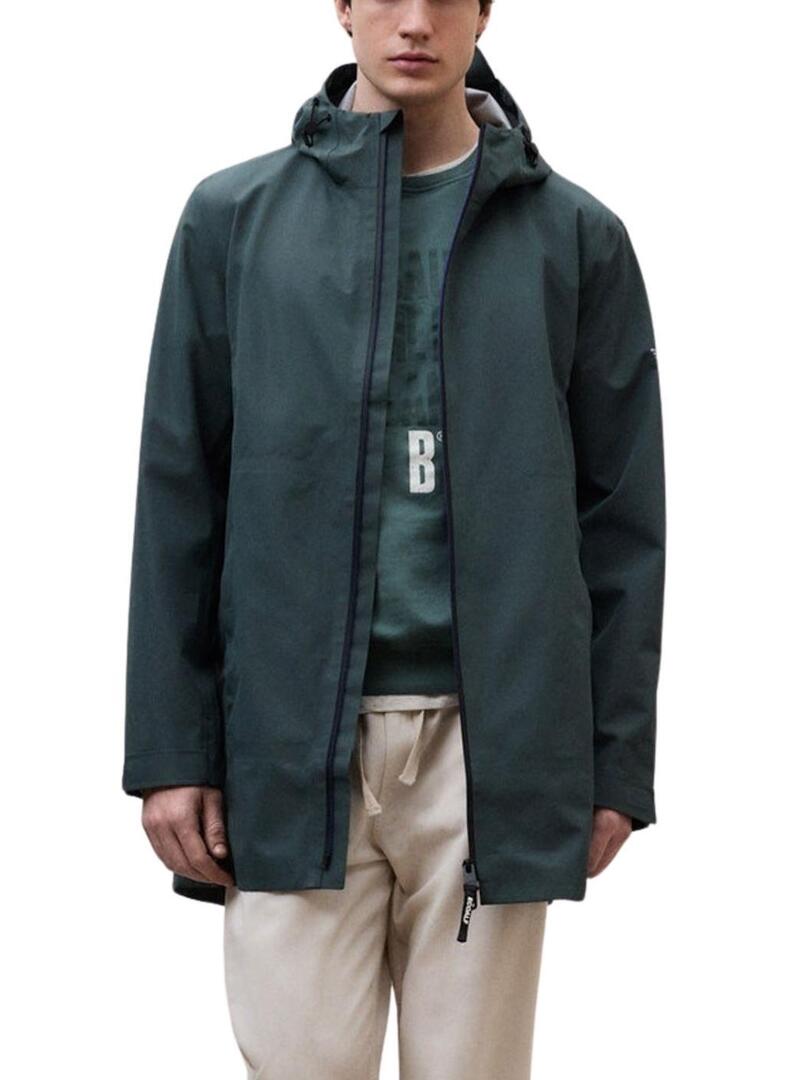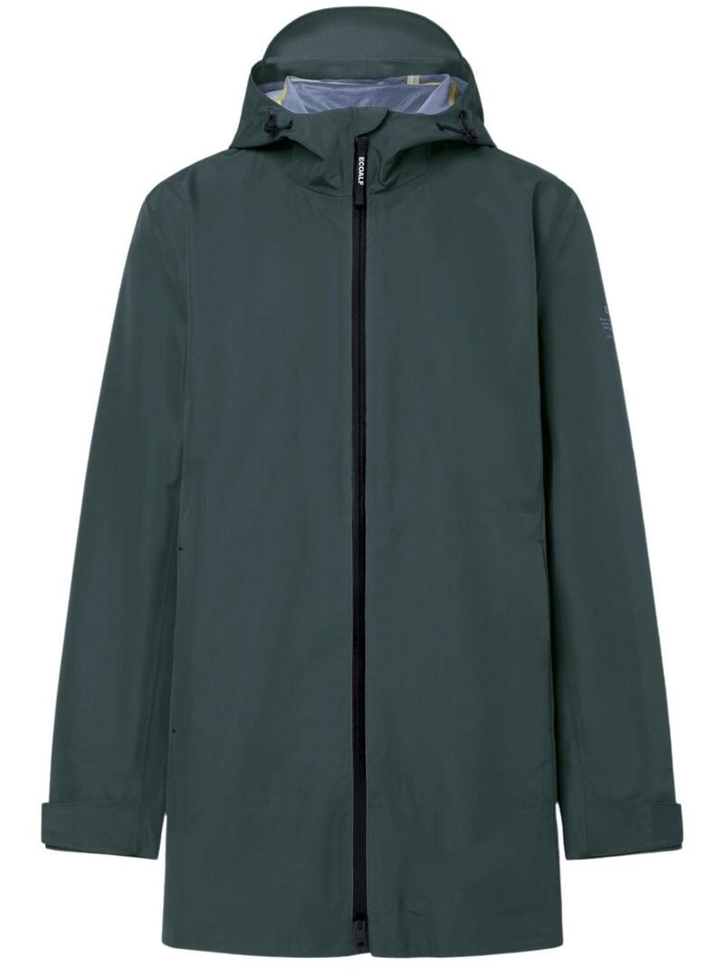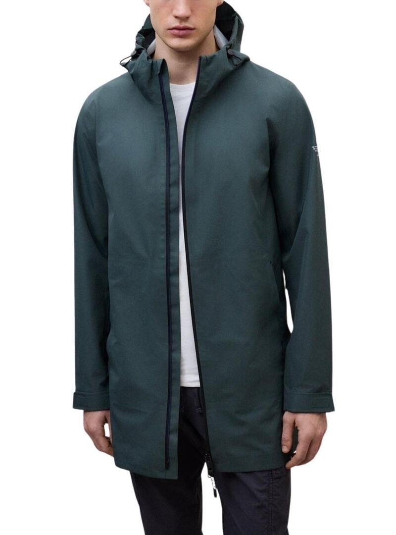 Giacca Ecoalf. Modello Bald. Colore verde. Impermeabile 3K. Realizzato con un tessuto riciclato. Fit regolare. Chiusura frontale con cerniera. Tasche anteriori. Con cappuccio regolabile con cordino e fermagli. Maniche regolabili con velcro. Traspirante 3K. Senza PFC. Il modello indossa la taglia L.