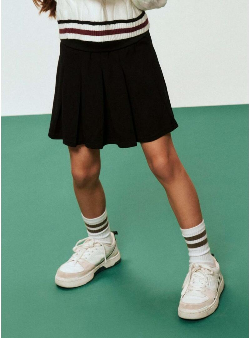 Gonna Name It. Colore nero. Vita elastica a righe in contrasto. Design a pieghe. Tessuto comodo e morbido. Stile basico e versatile. Ideale per look casual e più eleganti.
