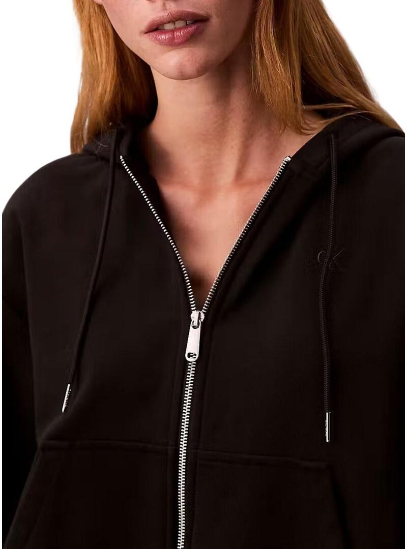 Felpa Calvin Klein Jeans. Modello Archive Logo. Colore nero. Chiusura con zip. Cappuccio regolabile con cordoncino. Logo ricamato in tinta sul petto. Tasche laterali. Vestibilità leggermente oversize. Estremità elastiche.