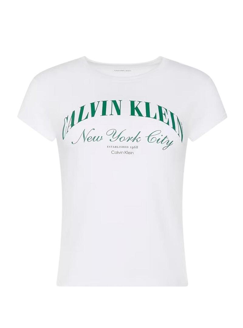 Maglietta Calvin Klein Jeans. Modello Graphic Logo. Colore bianco. Girocollo. Manica corta. Vestibilità aderente. Logo stampato sul davanti in verde.