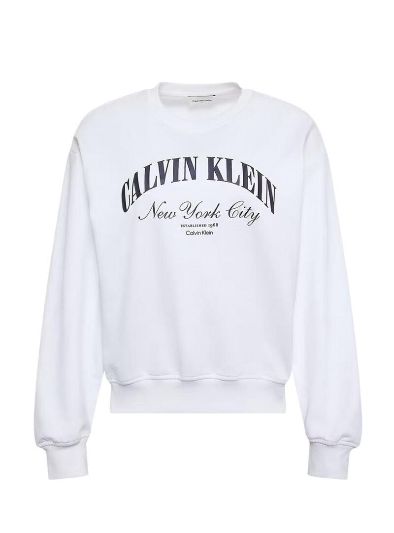 Felpa Calvin Klein Jeans. Modello Graphic Logo. Colore bianco. Collo rotondo. Orli a costine. Vestibilità leggermente oversize. Logo stampato sul davanti.