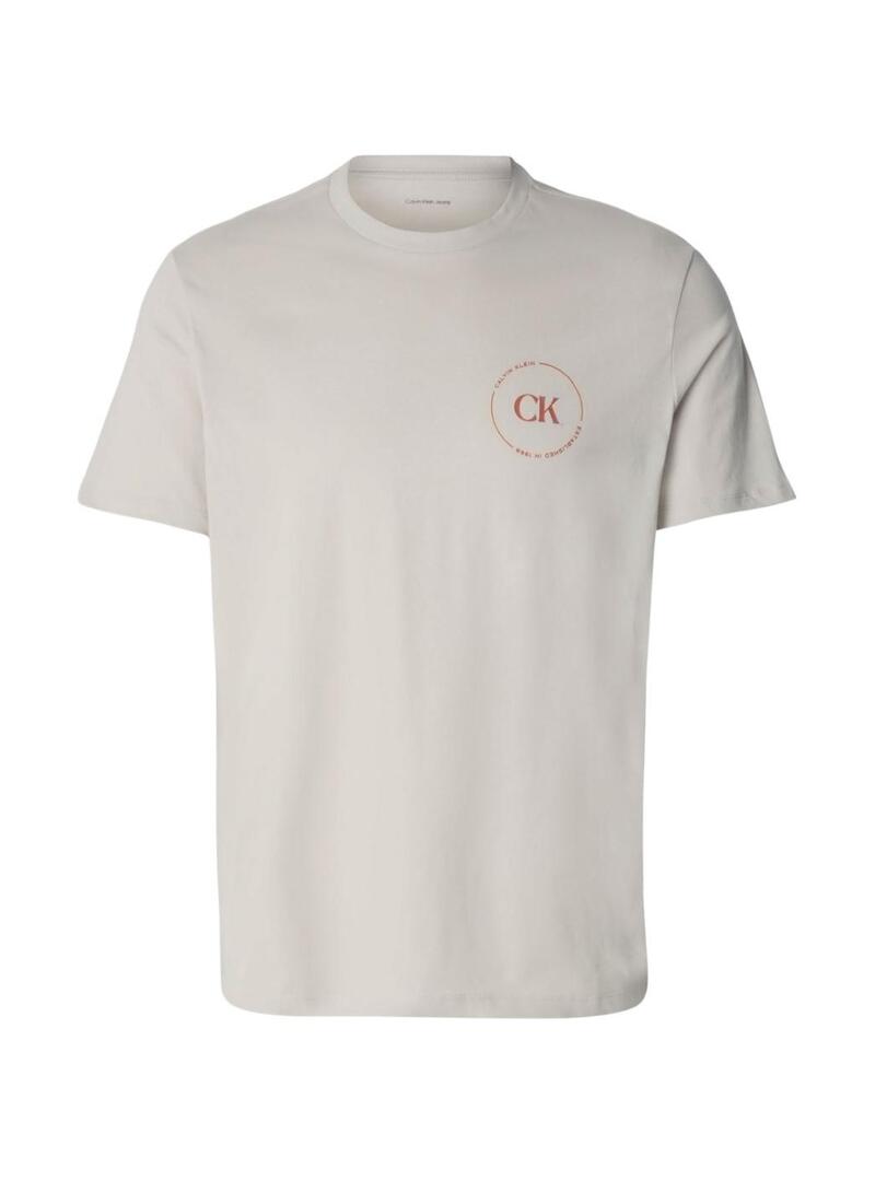 Maglietta Calvin Klein Jeans. Modello Circular Logo. Colore beige. Collo tondo. Manica corta. Vestibilità regolare. Logo circolare stampato sul petto e sulla schiena in colore arancione.