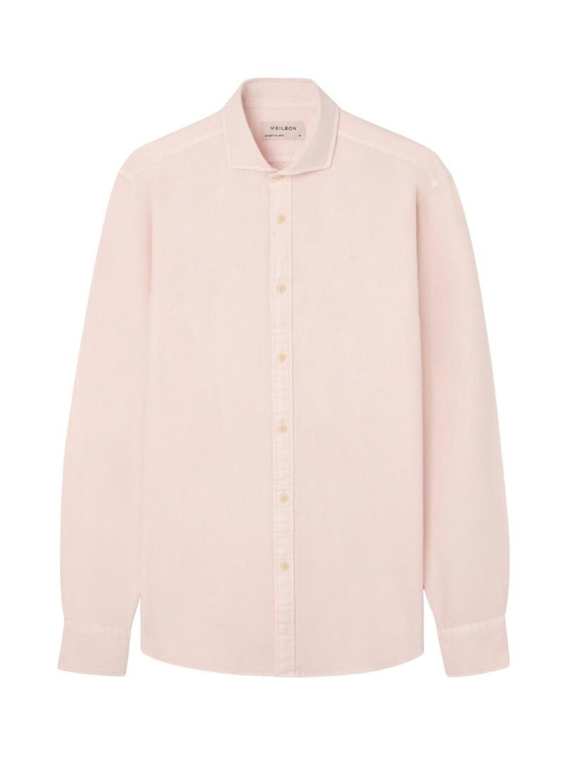 Camicia Silbon. Modello sport. Colore corallo. Tessuto con struttura. Logo ricamato in tinta sul petto. Taglio slim fit. Chiusura con bottoni. Colletto cutaway. Stile basic. Manica lunga.