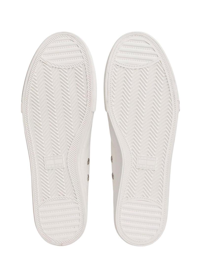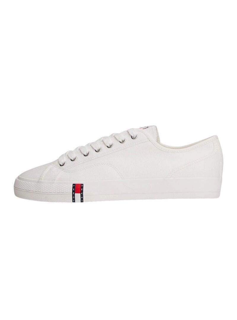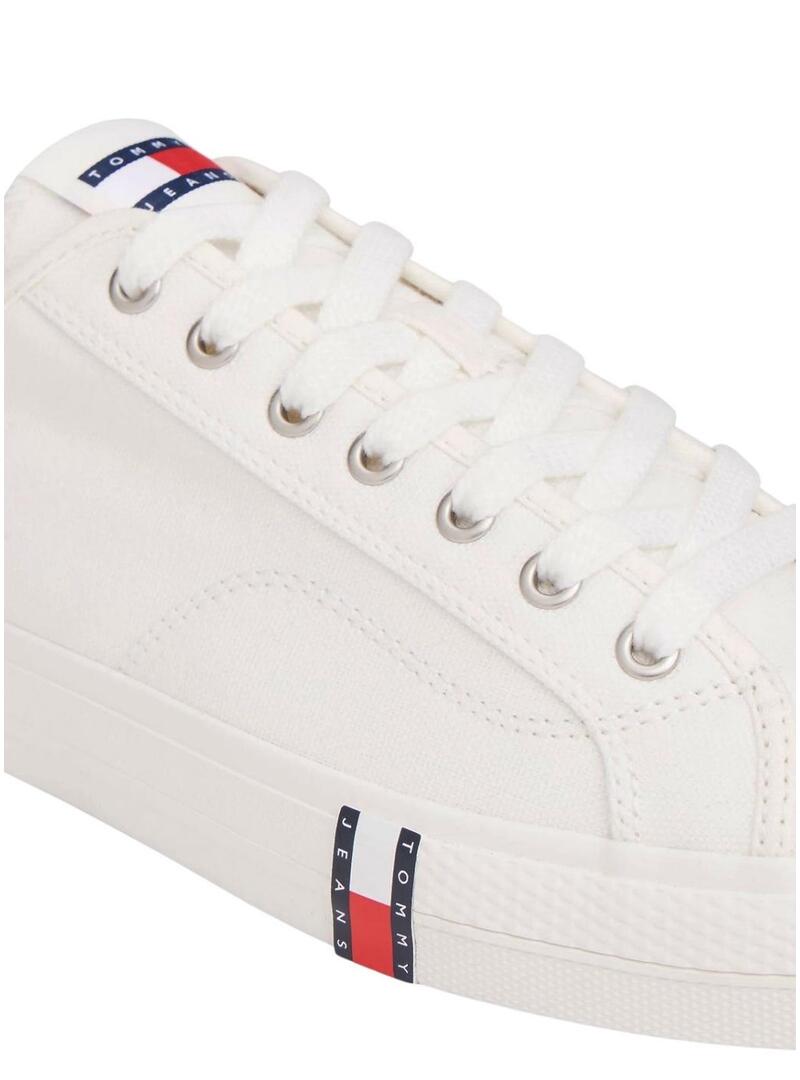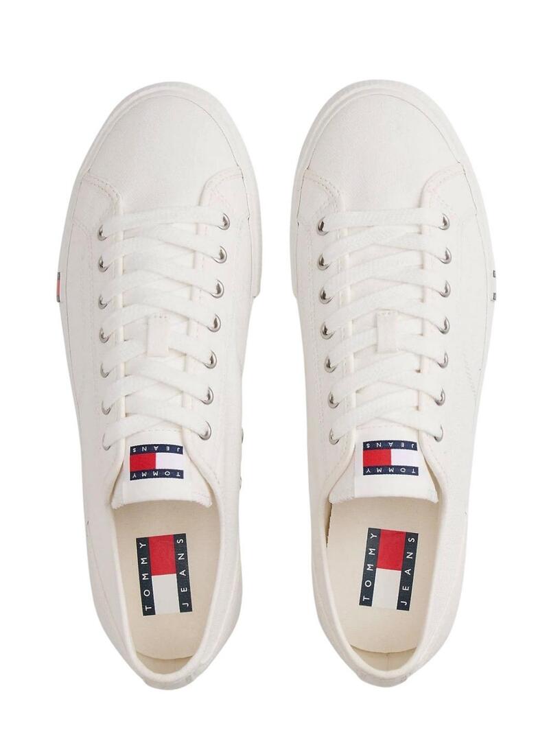 Scarpe da ginnastica in tela Tommy Jeans. Modello Archive. Colore bianco. Esterno in tela di cotone. Soletta estraibile in gomma termoplastica. Suola in gomma vulcanizzata. Cuciture a contrasto. Logo di Tommy Jeans sulla suola. Dettagli distintivi di Tommy Jeans. Taglio basso. Chiusura con lacci.