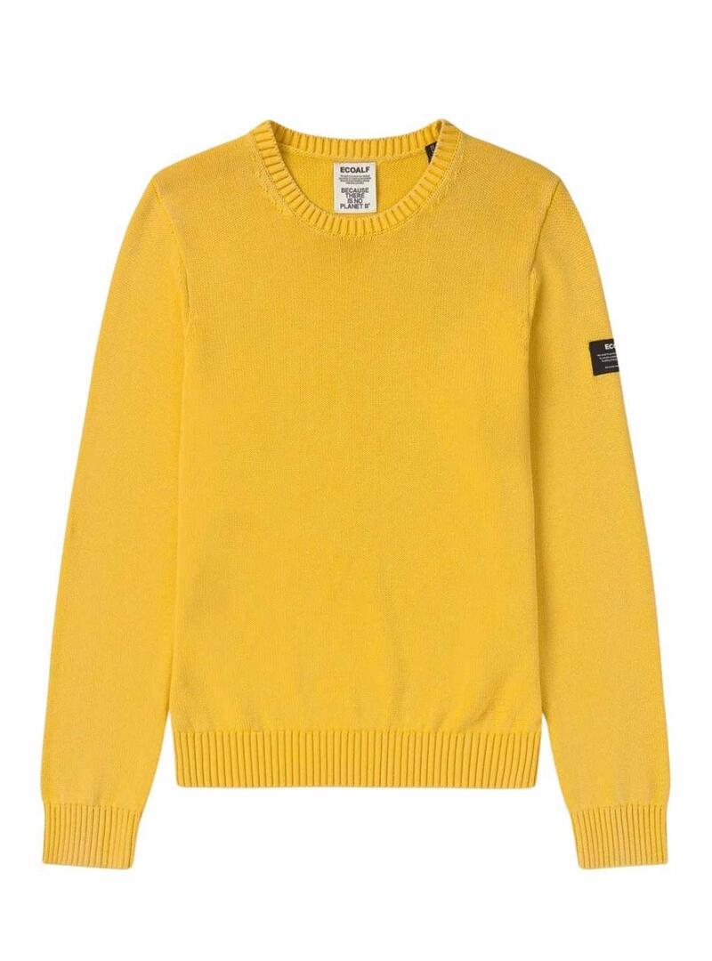 Maglia Ecoalf. Modello Tail. Colore giallo. Manica lunga. Realizzato con cotone riciclato. Collo rotondo. Taglio regolare. Finiture a coste. Lavaggio in pietra. Etichetta del marchio cucita su una manica. Il modello indossa la taglia L.