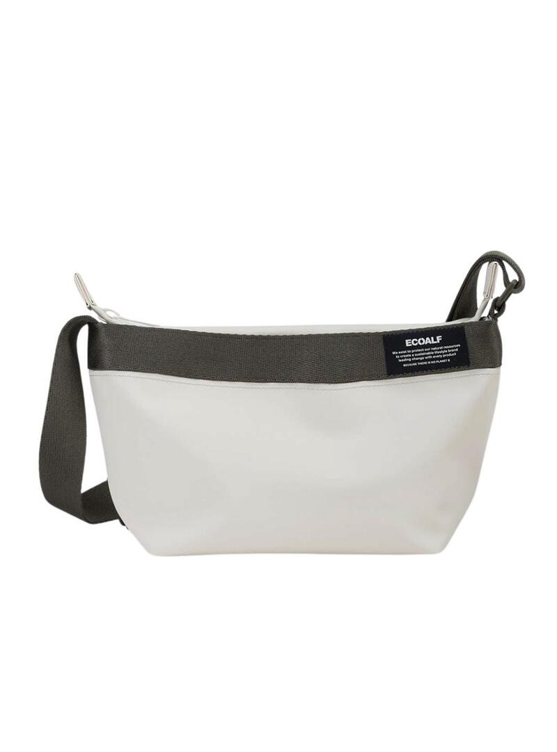 Borsa a tracolla Ecoalf. Modello Areny. Colore bianco. Dettagli in contrasto. Realizzato con tessuto riciclato. Tracolla regolabile e removibile. Chiusura con zip. Impermeabile. Tinto in capo. Senza PFC.
